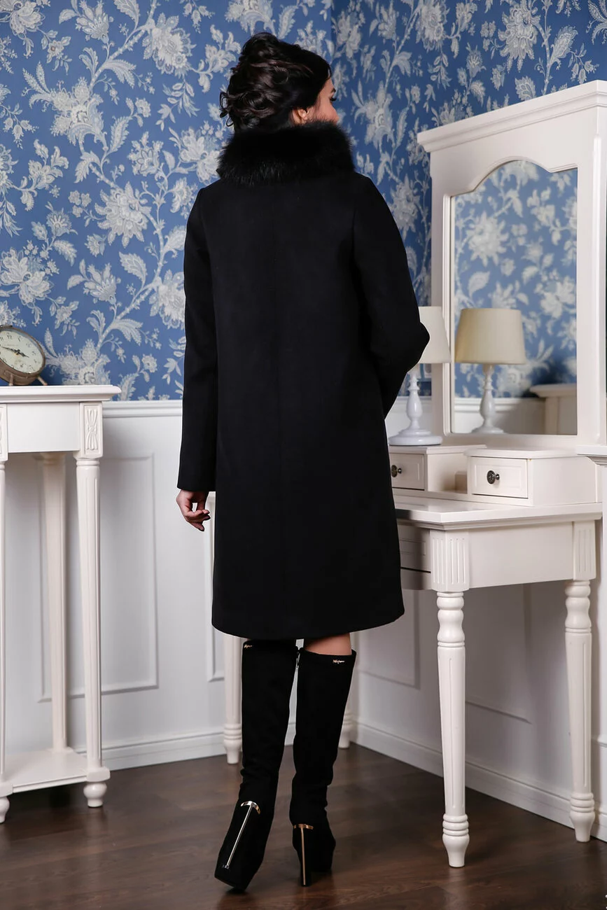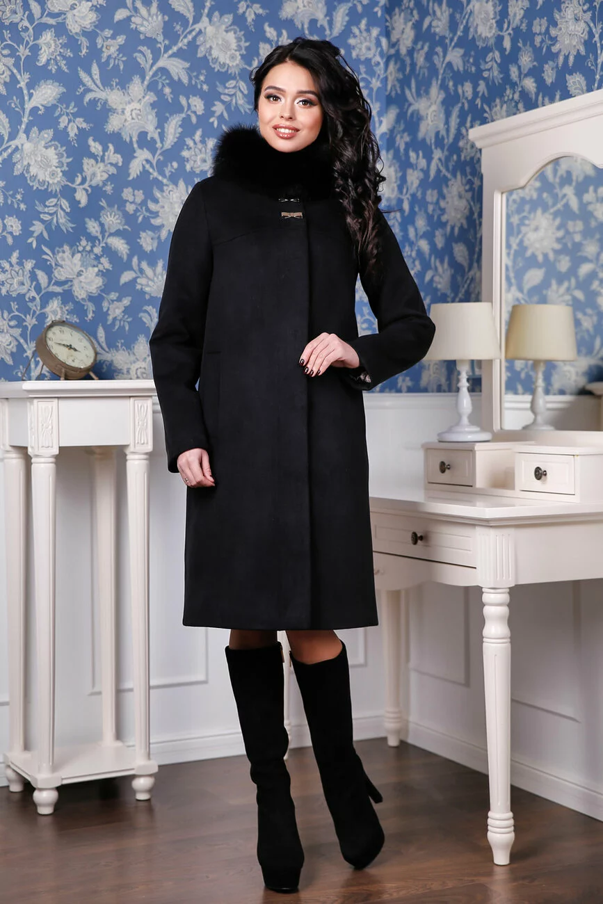 Пальто  женское зимнее, выполненное из пальтовой ткани, прямого силуэта с втачными рукавами. Воротник – стойка.