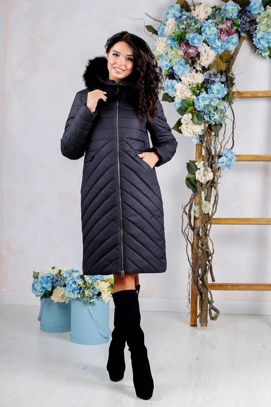 Пуховик стеганный женский зимний, выполнен из плащевой ткани ,полуприлегающего силуэта с втачными рукавами.